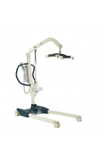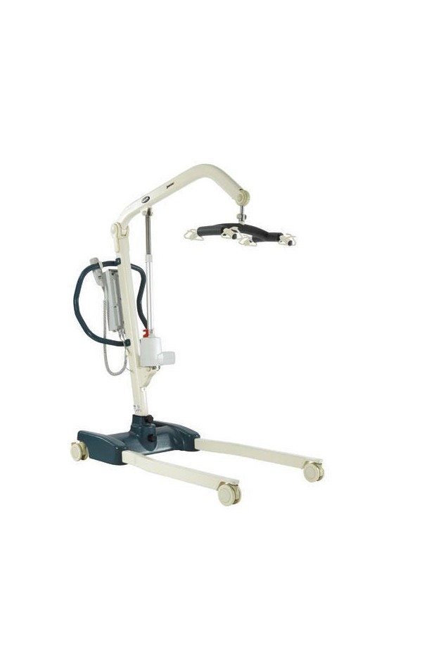 Grúa Jasmine de elevación que soporta hasta 200 kg, que facilita el trabajo diario del cuidador gracias a su fácil manejo y al amplio espacio de apertura de la base.