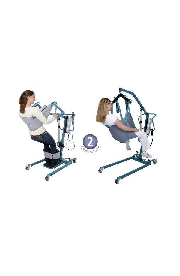 Grúa 'Duo', en solo 30 segundos podemos convertir la grúa electrónica convencional en una grúa bipedestación cambia pañales, y todo sin necesidad de herramientas.