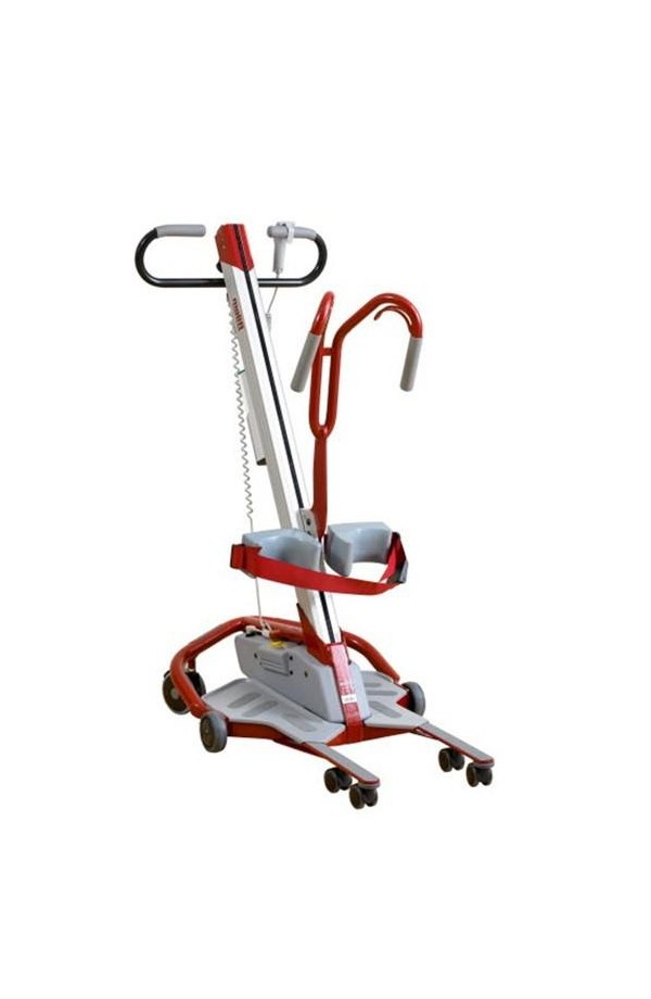 Gracias a su diseño exclusivo, permite un levantamiento natural hacia adelante, simulando el movimiento fisiológico del cuerpo. El mástil inclinado, la plataforma antideslizante y el arnés lumbar proporcionan máxima seguridad y confort tanto al usuario como al cuidador.