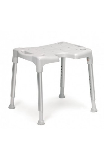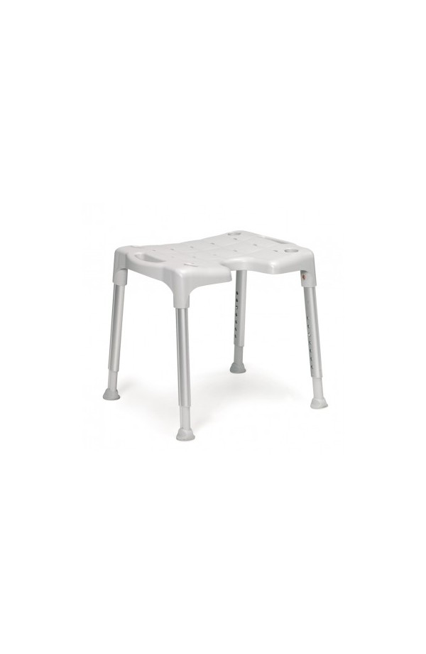 Taburete de ducha Swift, estable en cualquier suelo.La composición de los materiales (aluminio y plástico polipropileno) garantiza la máxima seguridad.
